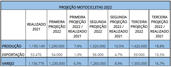 “A produção de motocicletas deve atingir 1.420.000 unidades em 2022, o que representa uma alta de 18,8% na comparação com o ano passado. Ao avaliar diversos fatores e a tendência para os próximos meses, acreditamos em uma retomada ainda mais forte do segmento.”