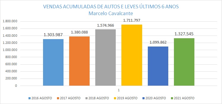 As vendas acumuladas totalizaram em agosto 1.327.545 veículos, anotando um crescimento em comparação com o mesmo período do ano anterior de 20,70%.