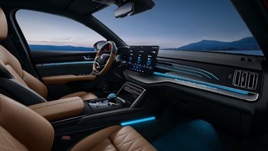 O interior do veículo recebeu um grande upgrade, com todos os bancos estofados em couro marrom, oferecendo exclusividade e qualidade. Os assentos do motorista e do passageiro são ventilados e aquecidos para fornecer o máximo em luxo. Também para os passageiros da frente, uma tela de info-entretenimento pode ser girada em um formato horizontal ou vertical para se adequar a visores específicos do veículo.