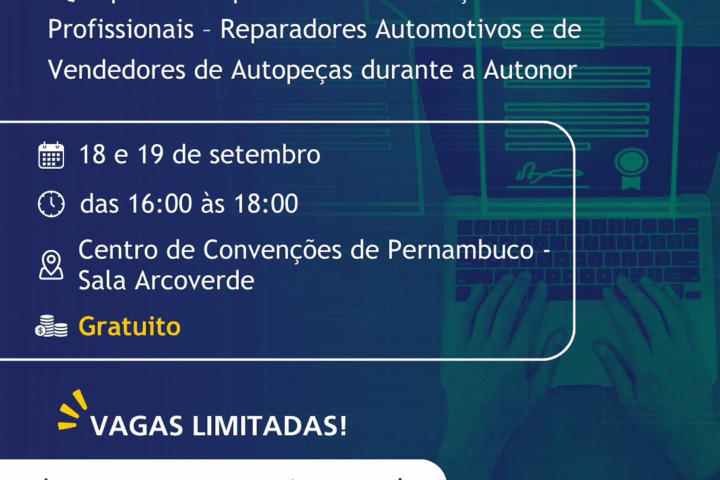 Nos dias 18 e 19 de setembro, o Instituto da Qualidade Automotiva (IQA) marcará presença na Feira Autonor, em Recife (PE), oferecendo provas gratuitas para a Certificação de Reparadores Automotivos e Vendedores
