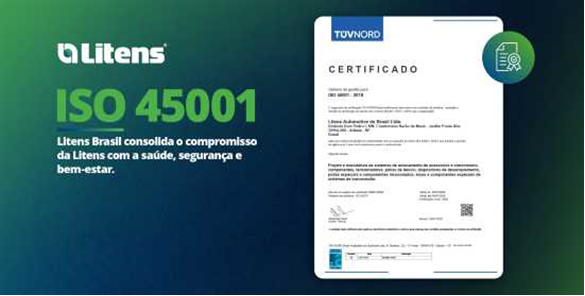 Unidade brasileira segue padrão global de excelência adotado em todas as operações da companhia. A Litens conquistou a certificação ISO 45001:2018 para Sistemas de Gestão de Saúde e Segurança Ocupacional (SSO) em