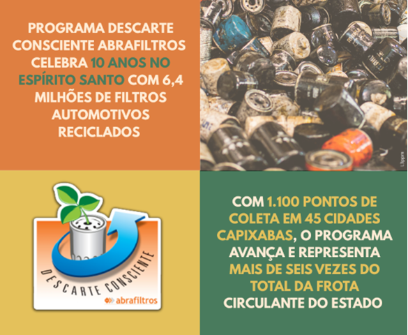 Com 1.100 pontos de coleta em 45 cidades capixabas, o programa de logística reversa de filtros usados do óleo lubrificante automotivo avança e representa mais de seis vezes do total da frota