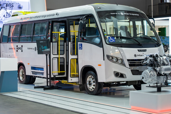 Volare Attack 9 será exibido no estande da HORSE Modelo é o primeiro micro-ônibus híbrido a etanol com solução Range Extender, desenvolvido em parceria entre a Marcopolo, a HORSE e a WEG