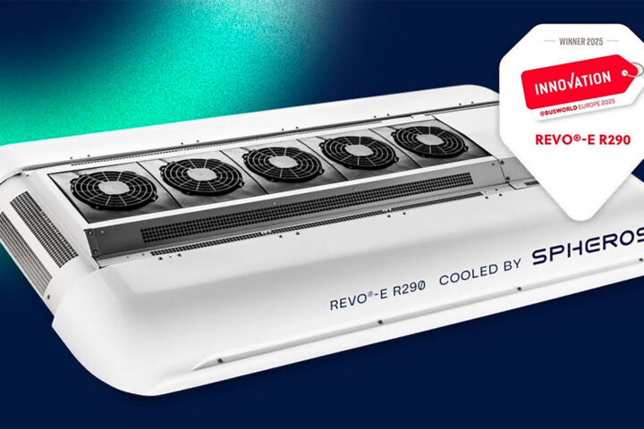 Spheros REVO®-E R290 é um sistema de ar-condicionado ecologicamente correto que utiliza refrigerante natural R290 Sustentável, seguro e global, estabelece um novo padrão de refrigeração para ônibus elétrico O Spheros REVO®-E R290,