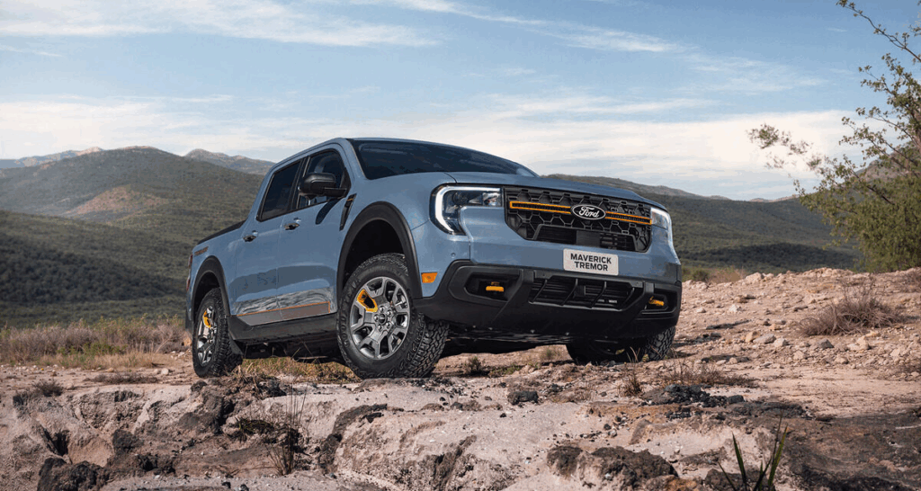 No visual, a picape exibe uma grade frontal redesenhada, para-choque atualizado e faróis de LED com nova assinatura em formato de C. Internamente, a Maverick eleva o padrão com a central multimídia SYNC 4 de 13,2 polegadas, equipada com GPS nativo, painel de instrumentos digital de 8 polegadas, carregador por indução e sistema de som Bang & Olufsen. Atualizações remotas (over-the-air), teto solar elétrico, ajuste elétrico do banco do motorista e capota marítima de série na caçamba completam o pacote de comodidades.