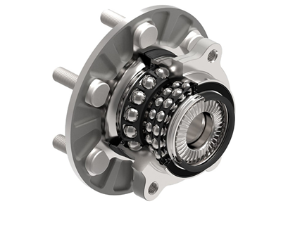 - Rolamentos de roda otimizados e rolamentos TriFinity™ de 3ª geração: Rolamentos de alta rigidez e isentos de manutenção garantem transmissão precisa de torque, saída de sinal ABS e guia direta da roda. Os rolamentos TriFinity de três carreiras para sistemas de propulsão elétrica aumentam a densidade de carga, reduzem o atrito e melhoram a rigidez sem aumentar o tamanho, possibilitando eficiência energética, redução de tamanho e maior vida útil.