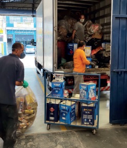 Todo esse descarte gera custo para a oficina. Mensalmente uma empresa recolhe todo material, emite certificado e dá o destino certo a cada item, seja plástico, alumínio, borracha, entre outros. Para se ter uma ideia, todo mês é um caminhão cheio de papelão que sai dali, por conta das embalagens das peças usadas nas reparações. A oficina gera muito lixo.