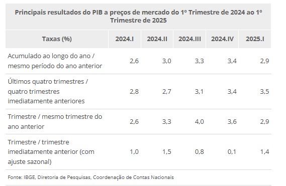PIB acumula alta de 3,5% em quatro trimestres, frente ao mesmo período de 2024