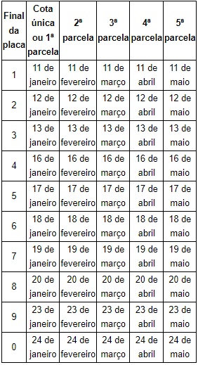 Quem optar pelo pagamento da cota única terá desconto de 3%. A arrecadação vai de 11 de janeiro a 24 de maio, com parcelamento disponível entre três e cinco vezes, a depender do valor do imposto.