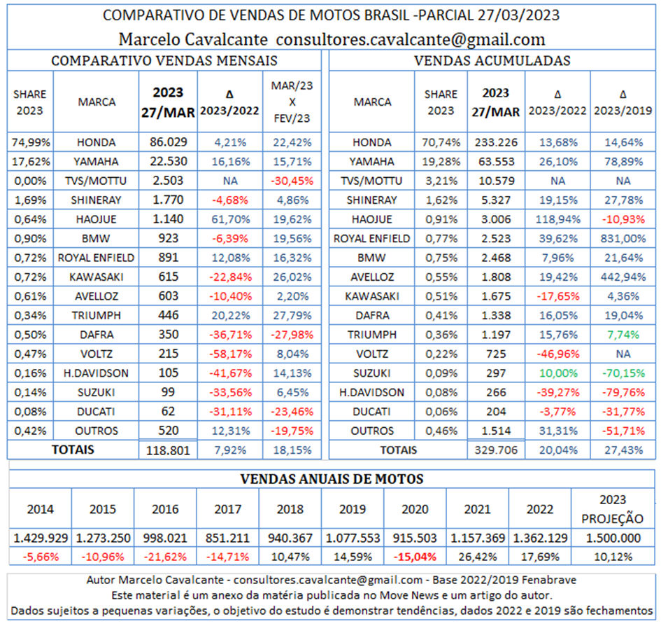 No próximo tópico vamos avaliar a parcial de vendas de março, com ranking de marcas e comparativo com exercícios anteriores.