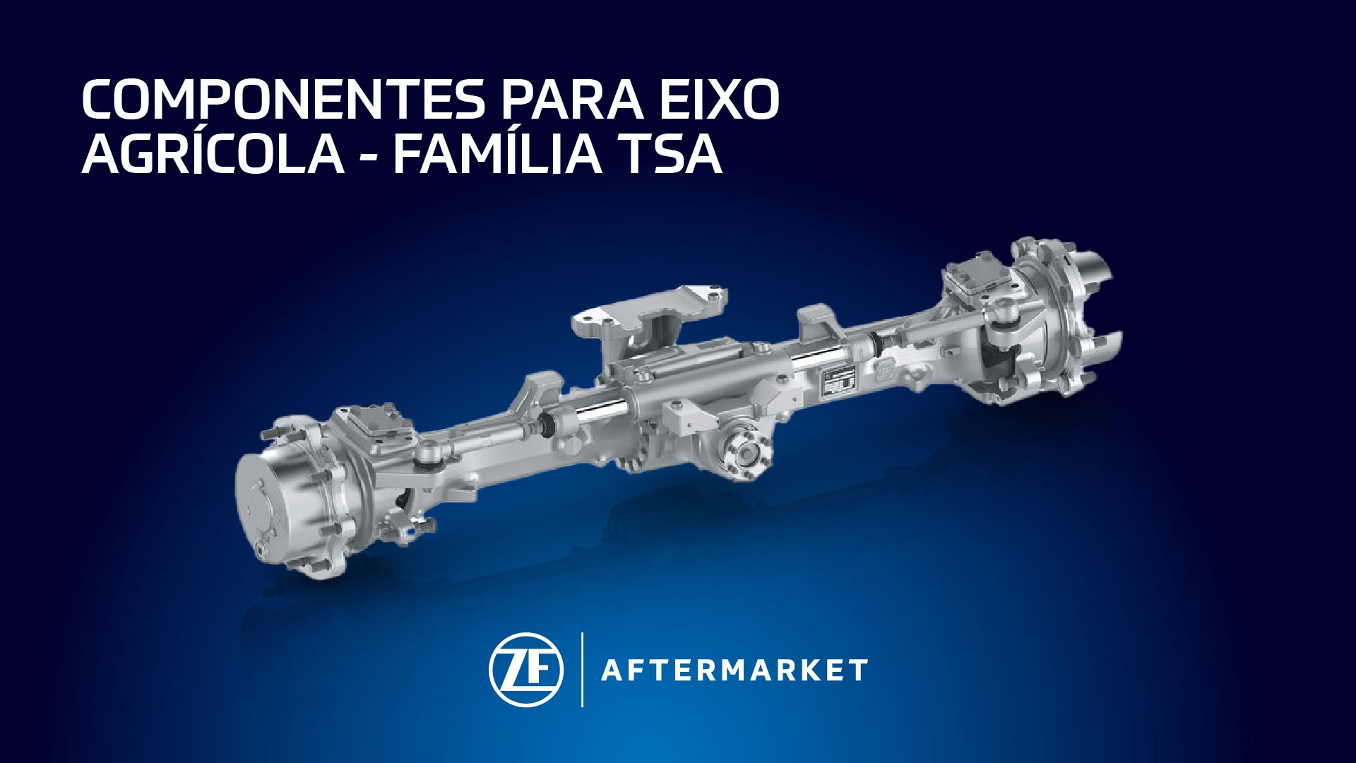 A ZF Aftermarket coloca à disposição no mercado de reposição da América do Sul uma variedade de componentes para eixos agrícolas da família TSA 09, 20 e 23, para aplicações em tratores das fabricantes Agrale, Agritec, Coyote, John Deere, Landini, LS Mtron, Mahindra, Massey Ferguson, Tramontini, Valtra e Yanmar.